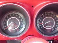 Something cool about the original instrument panel, er, well . . .basically a speedometer and gas gage, but sort of a less is more statment. However there are a few pretty hip aftermarket components made to bolt right in, consisting of either a muscle bound white face 4-5 gauge model or the very stealth black face, blue light LED digital multi-meter set up, hiding right in the place of the original speedometer and gas gauge.